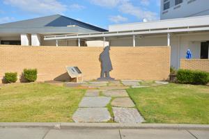 平成25(2013)年、姉妹都市提携20周年を記念してホットスプリングス市側が制作・設置した宮沢賢治のシルエット像(於:ホットスプリングス市)