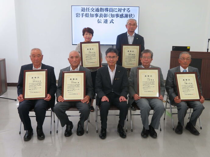 退任された交通指導員に岩手県知事感謝状が贈呈されました