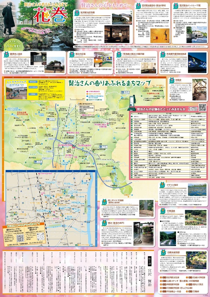 花巻市内の宮沢賢治に関連するイベントや施設、ゆかりの地などを紹介する「宮沢賢治イベントカレンダー」を年2回(春夏号は4月初め、秋冬号は9月初め)発行しています。