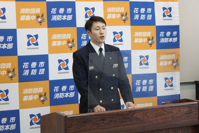 令和4年12月21日(水曜)に開催された花巻市消防職員意見発表会において、花巻北消防署大迫分署の藤根正識消防副士長が最優秀賞を受賞しました。藤根消防副士長は令和5年2月10日(金曜)盛岡市で行われる、「第46回岩手県消防職員意見発表会」に本市消防本部代表として出場します。